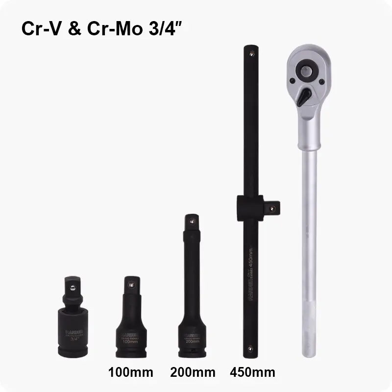 This socket set includes everything you need to tackle a wide range of mechanical tasks. With 22 bihexagonal sockets (ranging from 19mm to 60mm), a universal joint, two extension rods (100mm and 200mm), a slider (450mm), and a flipper ratchet, you’ll always have the right tool for the job. Designed to work seamlessly with the HARDEN pneumatic wrench, the 3/4″ drive ensures a secure fit and powerful grip for efficient disassembly and assembly work. Whether you’re a mechanic, technician, or DIY enthusiast, this set provides exceptional coverage for all your socket needs.