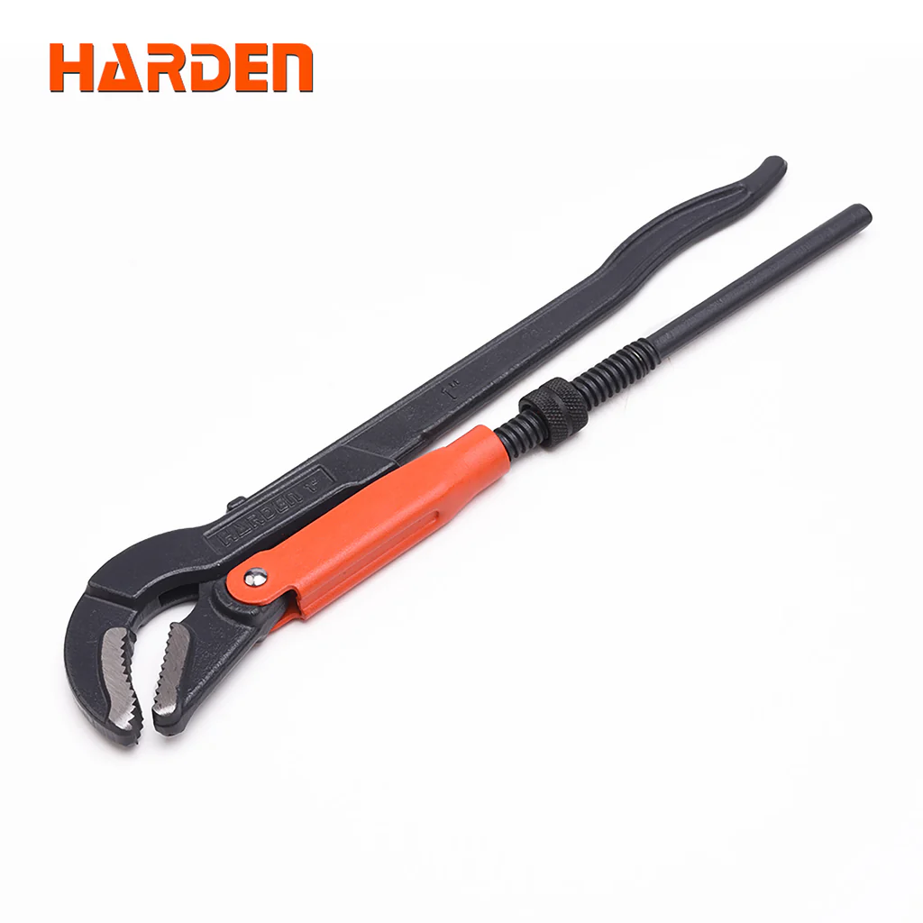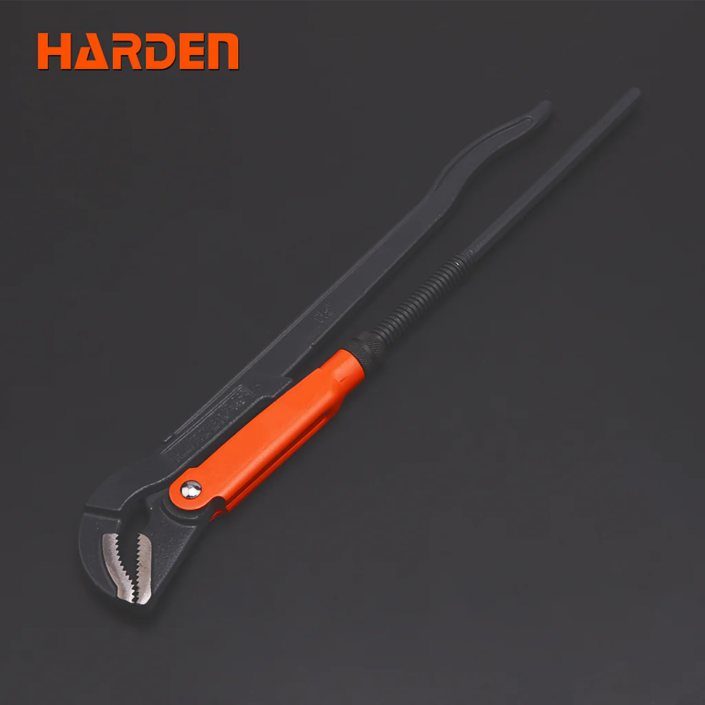 The 45° Bent Nose Pipe Wrench is engineered for plumbers, mechanics, and industrial professionals who require a strong grip and precise control. Made from high-quality carbon steel, the wrench body is fully heat-treated, while the induction-quenched jaw teeth deliver exceptional hardness, durability, and bite strength. The 45° angled jaw allows easy access in tight or hard-to-reach areas—ideal for pipeline installation, repair, and maintenance.