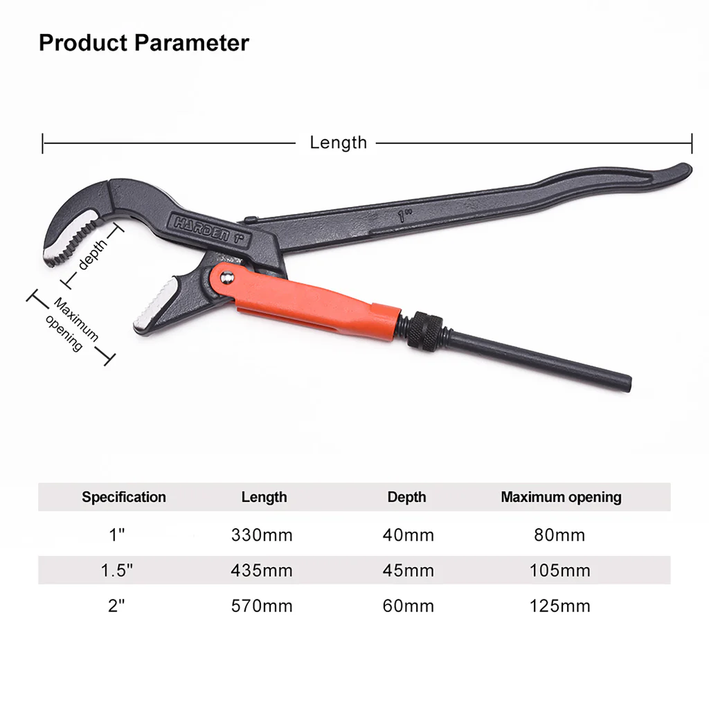1″, 1.5″, 2″ 45° Bent Nose Pipe Wrench — Strength, Grip & Precision