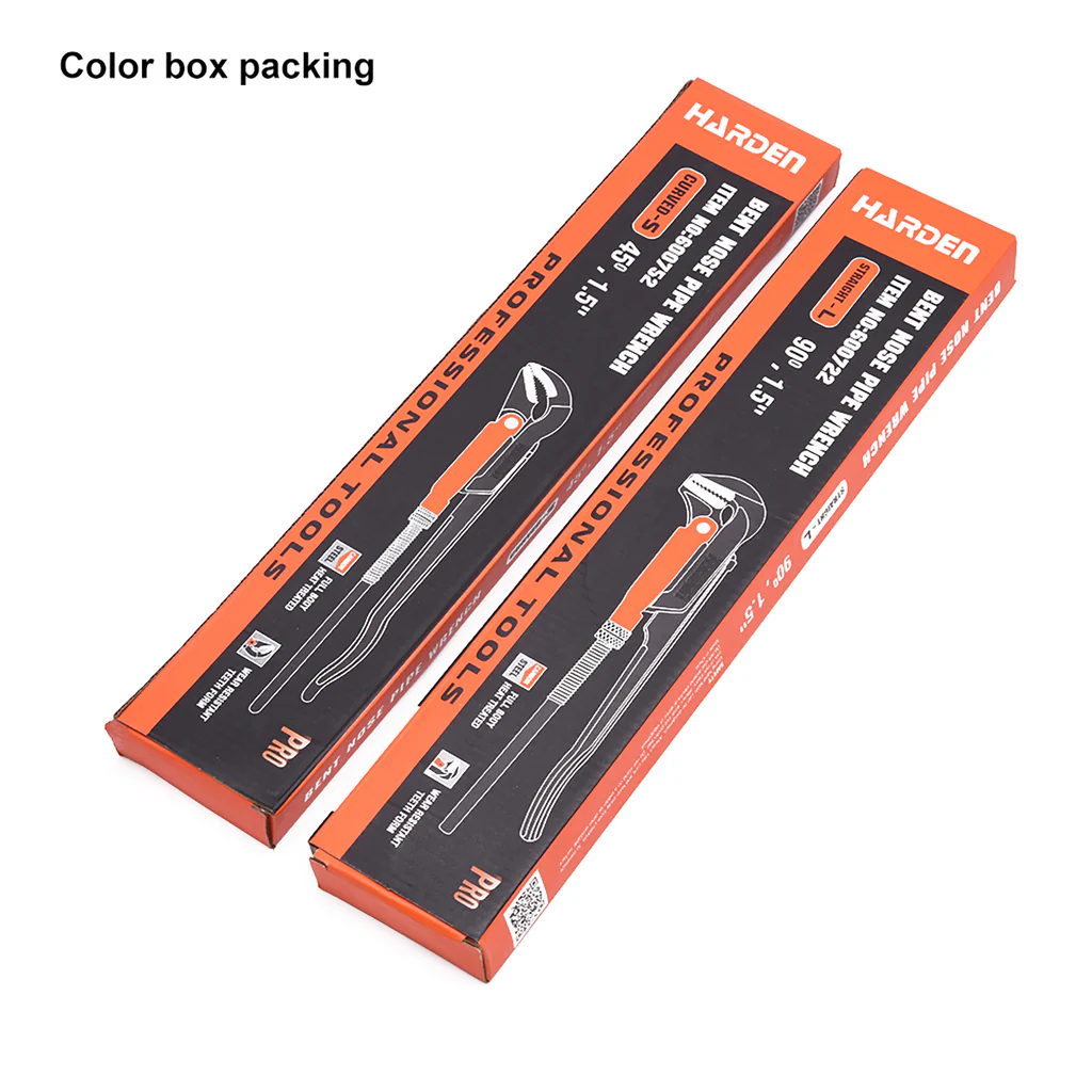 Packed in a color box, the 45° Bent Nose Pipe Wrench is ideal for plumbing, pipeline installation, mechanical work, and heavy-duty industrial applications.