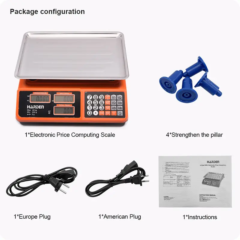 This scale includes a built-in rechargeable battery with long standby time and enters energy-saving mode after just 3 seconds of inactivity. It supports 110–240V charging, including European and American plug adapters, making it suitable for international use. Practical features such as one-key power switch, return-to-zero, tare function, adjustable rotating feet, and strengthened pillar construction ensure stability, accuracy, and ease of operation throughout the day. Fully CE approved, it meets professional and commercial standards.