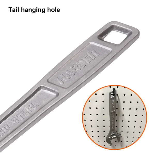 Available in 6″, 8″, 10″, and 12″ sizes, the Harden Adjustable Wrench offers flexibility for any job. Each wrench features smooth, precise jaw adjustment for a secure grip on nuts and bolts of various sizes, while the tail hanging hole allows convenient storage on tool racks or pegboards. Whether you’re a professional tradesman or a DIY enthusiast, this wrench combines efficiency, comfort, and reliability in every turn.