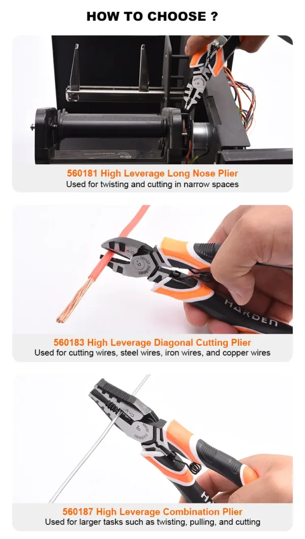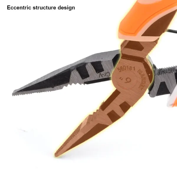Shop the 6-inch High Leverage Long Nose Plier made from premium CR-V steel with an ergonomic TPR handle and black oxide finish. Perfect for electricians and DIY use — durable, rust-resistant, and built for precision.