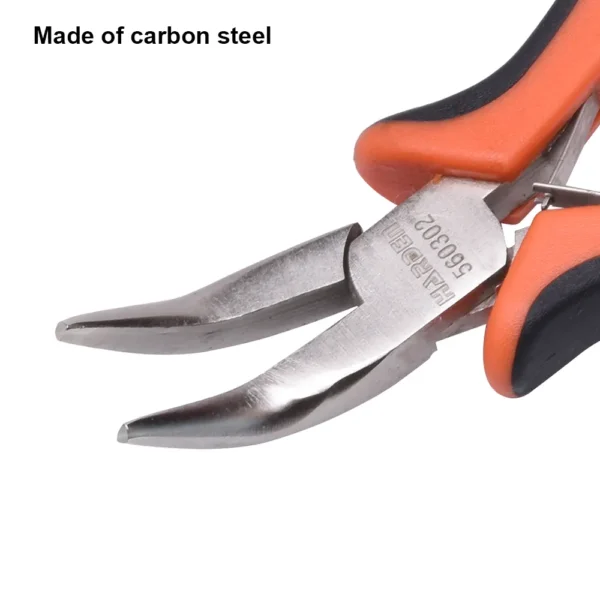 Buy the Mini Bent Nose Plier 4.5 inch, made from durable carbon steel with an ergonomic TPR handle and double leaf spring. Ideal for wire cutting, electronics, crafts, and appliance repair — compact, strong, and built for precision.
