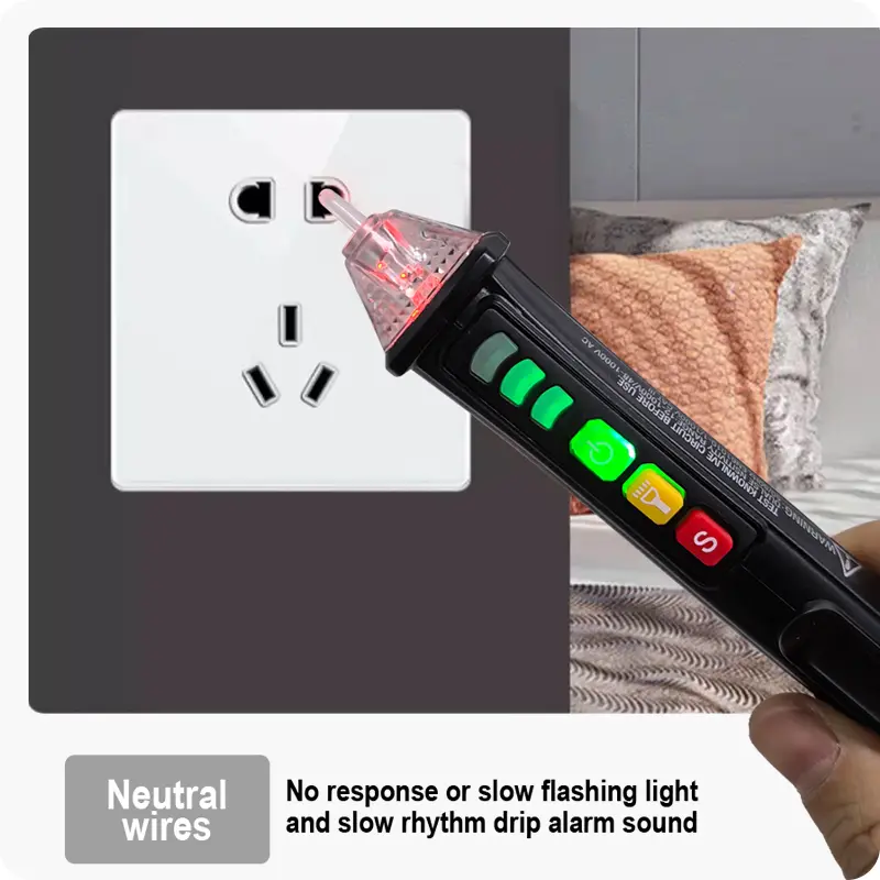This advanced tester features three-stage NVC sensitivity indicators—green for low, yellow for medium, and red for high voltage levels. Its cutting-edge smart chip distinguishes between live and neutral wires with absolute clarity: